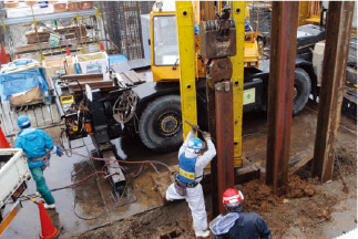 丸建リースの工事施工は、安全第一をモットーにユーザーのニーズにお応えするために、ソイルセメント連続壁工事(SMW工法)をはじめ山留架払工事、環境を考慮した無振動打抜工事、各種基礎杭工事、障害撤去工事の受注施工体制を整えています。