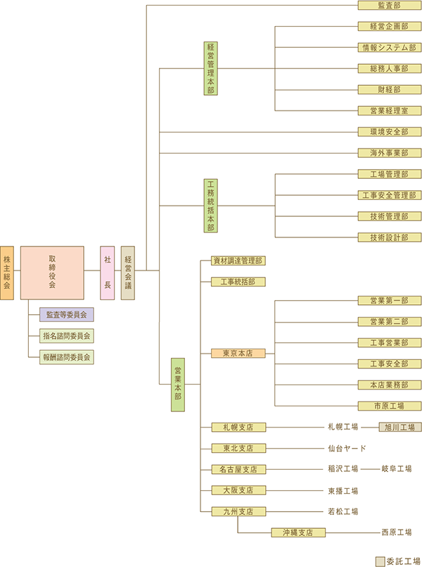 丸建リースの組織は、全ての部門が有機的に結合され、お客様の多種多様なニーズに、迅速・正確・安全にお応えする事を基本としています。そしてつねに相互に綿密なコミュニケーションを図りながら的確に判断し、対応するプロフェッショナルな組織になっています。